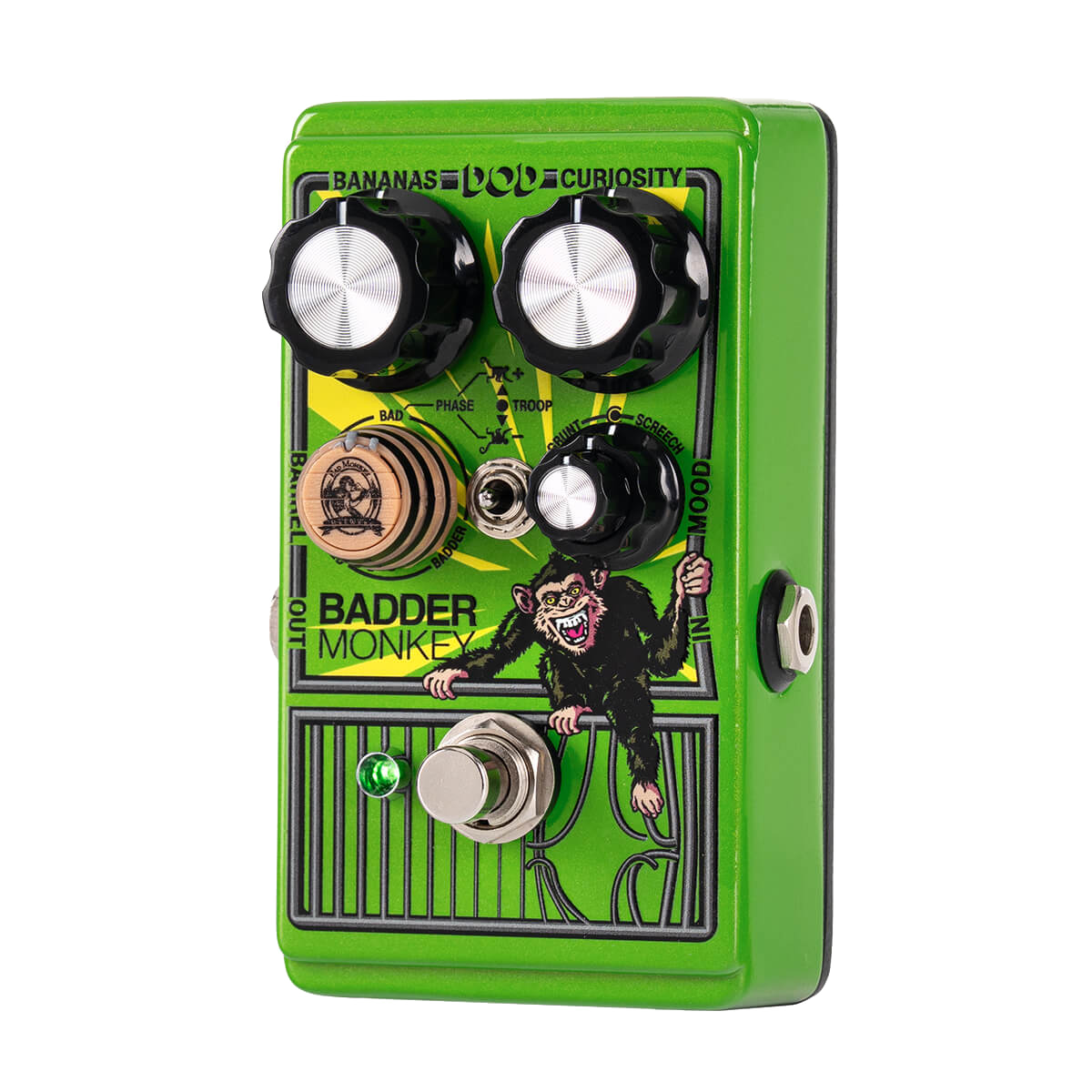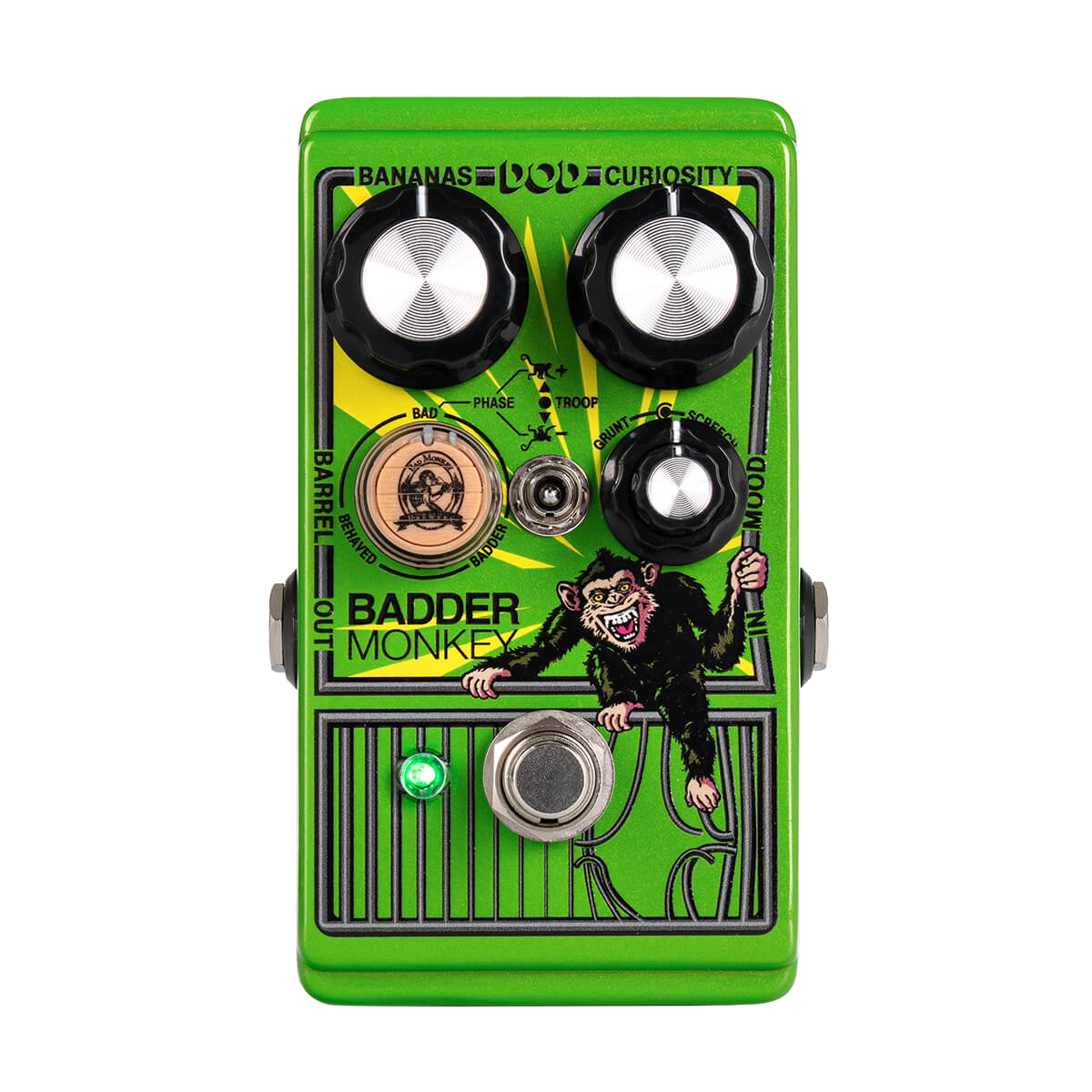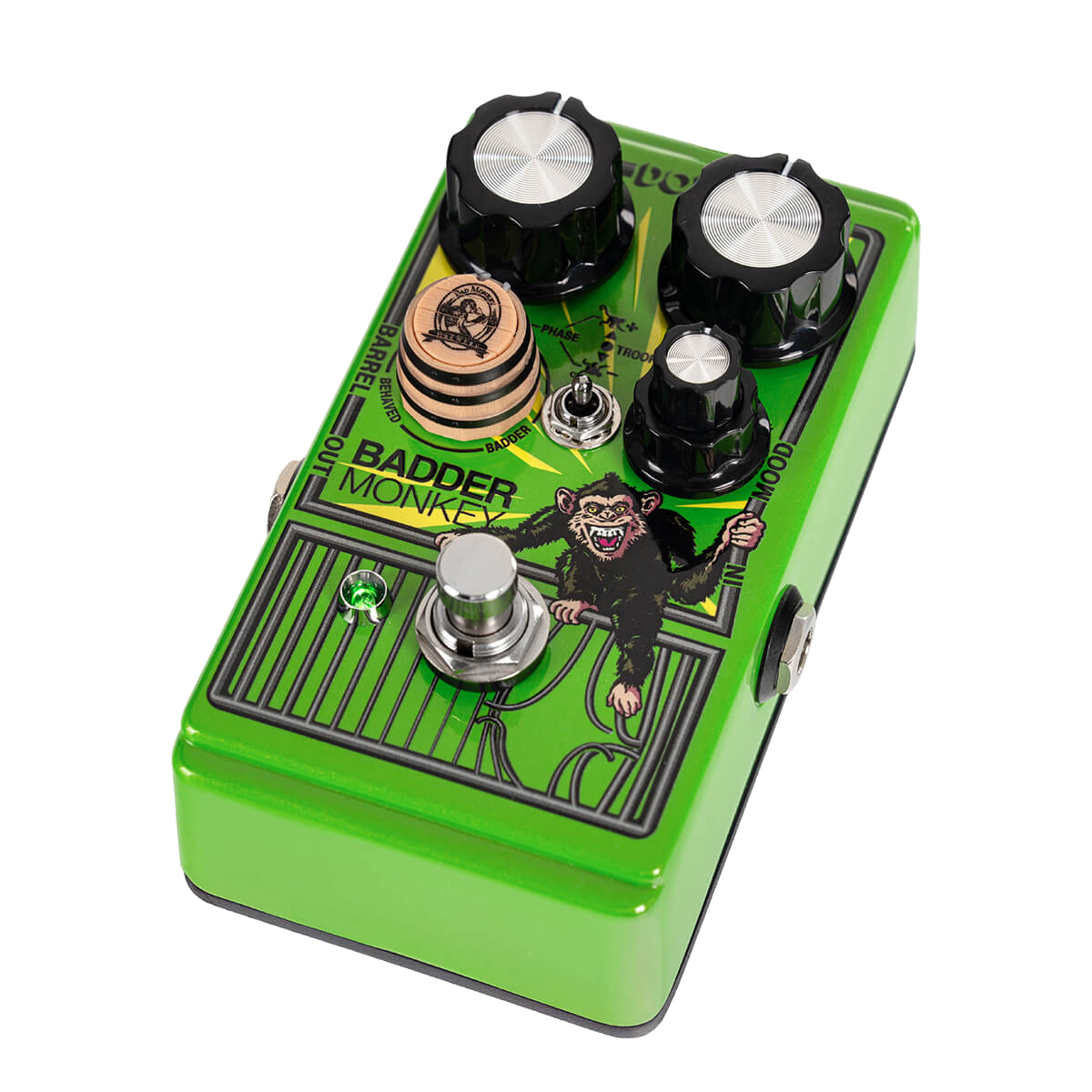 It not only includes a faithful reproduction of the original circuit and sound but far exceeds its predecessor in features and versatility. From its three completely independent Behaved, Bad, and Badder overdrive circuits giving you three pedals in one, to its unique parallel blending enabled by the patent-pending Barrel Control, further enhanced by optional out-of-phase combinations, to the all-three-in-parallel Troop mode, the Badder Monkey represents unheard-of variability in an affordable compact overdrive pedal!