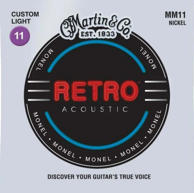 Martin Retro® strings are the real deal. Not an imitation. With Martin Retro® strings, you get one tough set that offers true, consistent tone and sounds like nothing else on the market. Martin’s solid nickel/copper alloy blend provides a reduced pick attack that allows the guitar’s tonewoods to be heard, not overshadowed. Martin’s proprietary Monel wrap wire is naturally corrosion resistant, so you can play them for a long time with nothing to get in the way of your music. Discover your guitar’s true voice. Retro® strings offer enhanced longevity with warm natural tone, and they sound great plugged in.